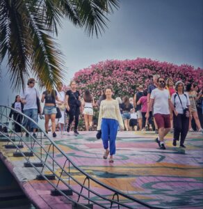 - Der perfekte Foto-Spot: Wenn ihr genau in der Mitte der Brücke stehen bleibt, habt ihr einen der besten Blickwinkel auf das monumentale Gebäude der Rechtsfakultät auf der einen Seite und die glänzende Floralis Genérica auf der anderen.