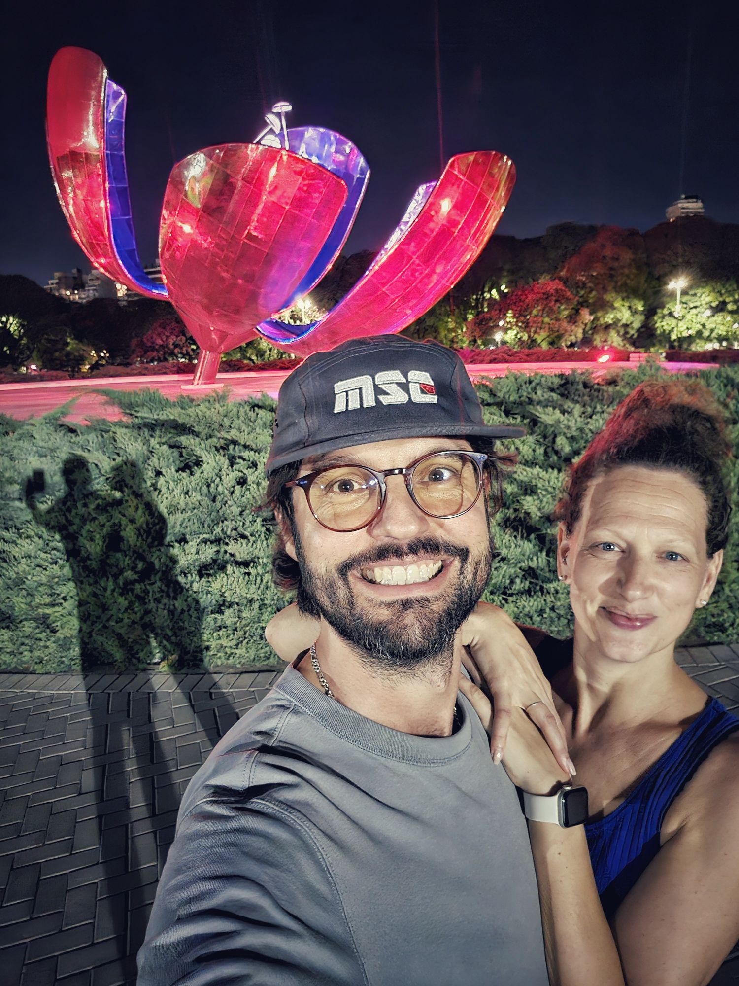 Ich stehe hier vor einer 23 Meter hohen Blume aus Edelstahl und Aluminium, die einfach alles verkörpert, was ich am Reisen liebe – die Verbindung von Technik, Kunst und dem Rhythmus der Natur.