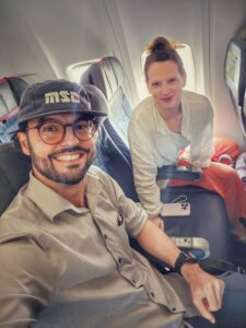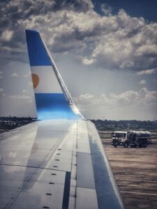 Im Flieger noch schnell ein Erinnerungsfoto 📸 geschossen und los geht’s auf unseren 1:50 Std. Flug von Asuncion nach Buenos Aires. Ich nutze meine Flüge meist, um etwas produktiv am Laptop zu arbeiten oder ein Fachbuch zu lesen. Das geht erstaunlich gut, ich drücke mir meine AirPods in die Ohren, schalte auf Geräuschunterdrückung und schon bin ich in meiner ruhigen und entspannten eigenen Welt, abgekoppelt von all den lauten Menschen mit Ihren schreienden Kindern um mich herum 😅