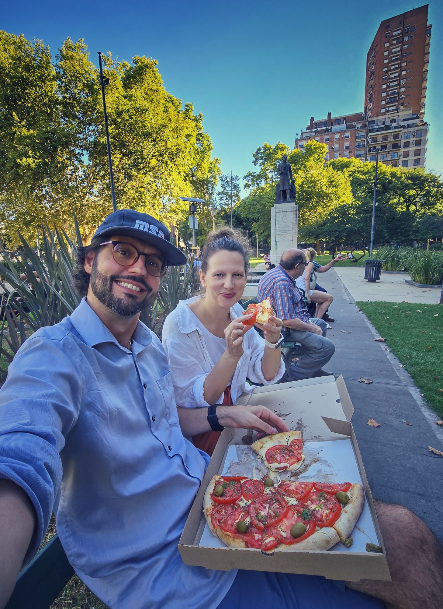 Mit knapp zwei Stunden Verspätung in Buenos Aires angekommen, war das erste, was auffiel: Die Temperaturen und die trockene Luft aus Asuncion waren per se. Die Hauptstadt Argentiniens begrüßte mich beim Abstieges der Gangway in Richtung Rollfeld, mit einer warmen Brise, bei fast schon kühlen 29°C 😎 Dann noch schnell mit dem Bus ans Gate und durch die Immigration und schon waren wir dann auch rechtlich in Argentinien. Anschließend mit dem Uber quer durch die City ins Apartment und noch einen kleinen Snack im Park …