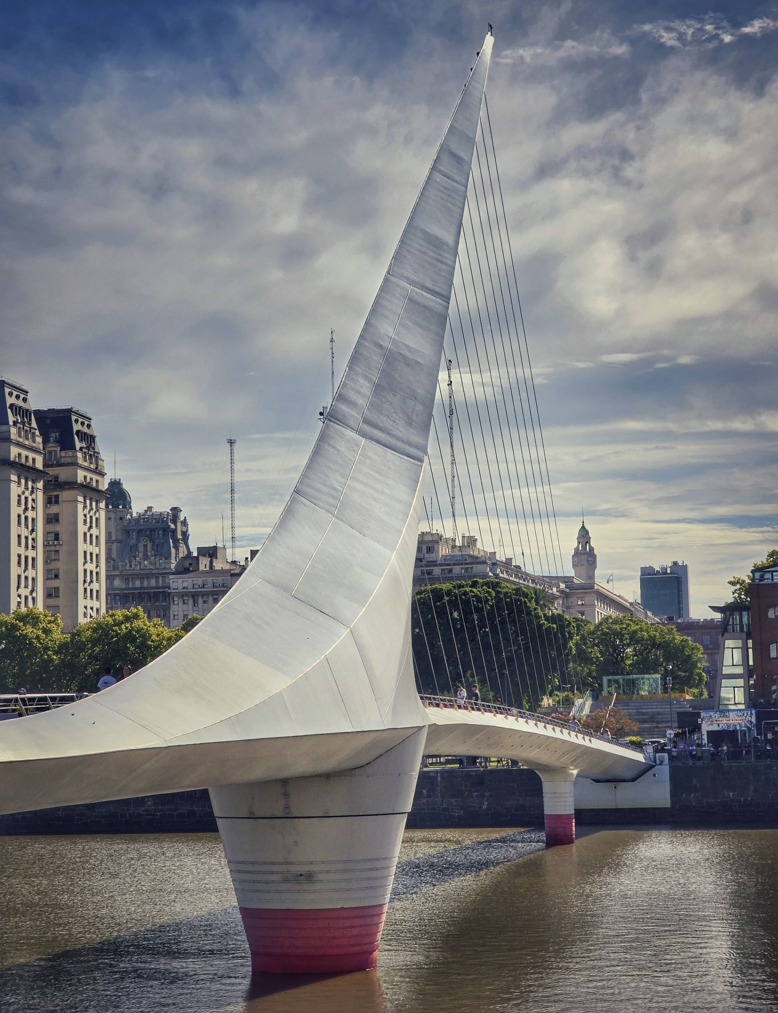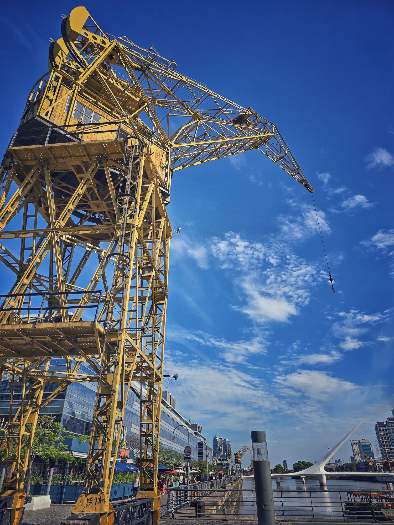 Wenn man den Docks ganz nach Norden folgt (Richtung Dique 4), verlässt man den touristischen Trubel ein wenig. Dort findet man die alte Schwenkbrücke. Während die Puente de la Mujer rein auf Design setzt, ist dieses eiserne Ungetüm im Norden pure Industriegeschichte. Es ist faszinierend zu sehen, wie diese massiven Stahlkonstruktionen früher den Weg für die großen Schiffe freigemacht haben. Ein Muss für jeden, der auf „Industrial Vibes“ steht!