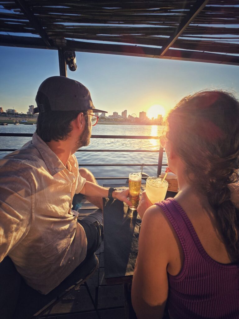 Es ist einer dieser Orte, an denen man hängen bleibt. Man bestellt sich ein kühles Bier oder einen Drink, spürt die Brise vom Fluss und schaut zu, wie die Sonne langsam den Himmel in Pastelltöne taucht.