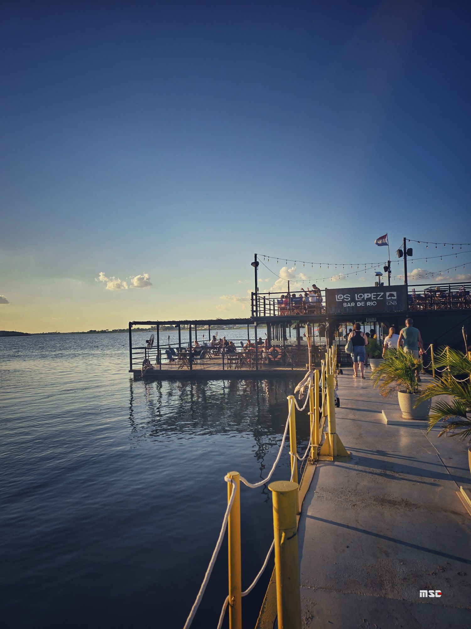 Es ist einer dieser Orte, an denen man hängen bleibt. Man bestellt sich ein kühles Bier oder einen Drink, spürt die Brise vom Fluss und schaut zu, wie die Sonne langsam den Himmel in Pastelltöne taucht.